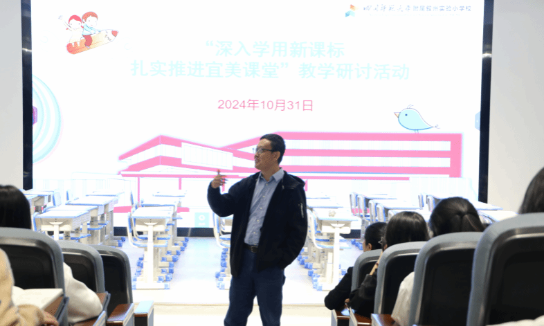 本次研讨活动分为课堂展示和专家组评课议课。在课堂展示环节,川师附属叙州小学龙泳婷老师带来了《江南》的研讨课,通过具体情景循序推动课文,关注学生情感体验,以丰富的朗读与诵读形式引导学生感受江南之美。达州市小学语文教研组成员沈成彦老师带来了《麻雀》的研讨课,以写作密码为主要目标,以故事情节为导向,引导学生关注“看到的”“听到的”“想到的”,并让学生尝试情境创意表达,落实习作目标,提升习作能力。课后,两位教师分别进行了反思性说课,分享了备课思路与课堂收获。