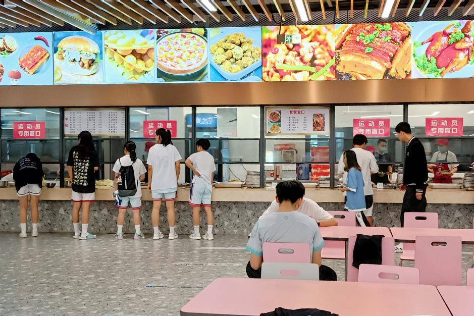 本次交流赛共有近500名师生参赛,为了让师生们吃到既有营养又美味的饭菜,饮食管理中心认真制定保障方案、落实工作人员安排,提前做好餐饮准备工作。针对比赛期间就餐人数多、时间集中等情况,特开设运动员专用窗口、开通微信便捷支付,并且针对性地进行科学配餐、营养膳食、有序供餐,保证师生用餐安全放心。