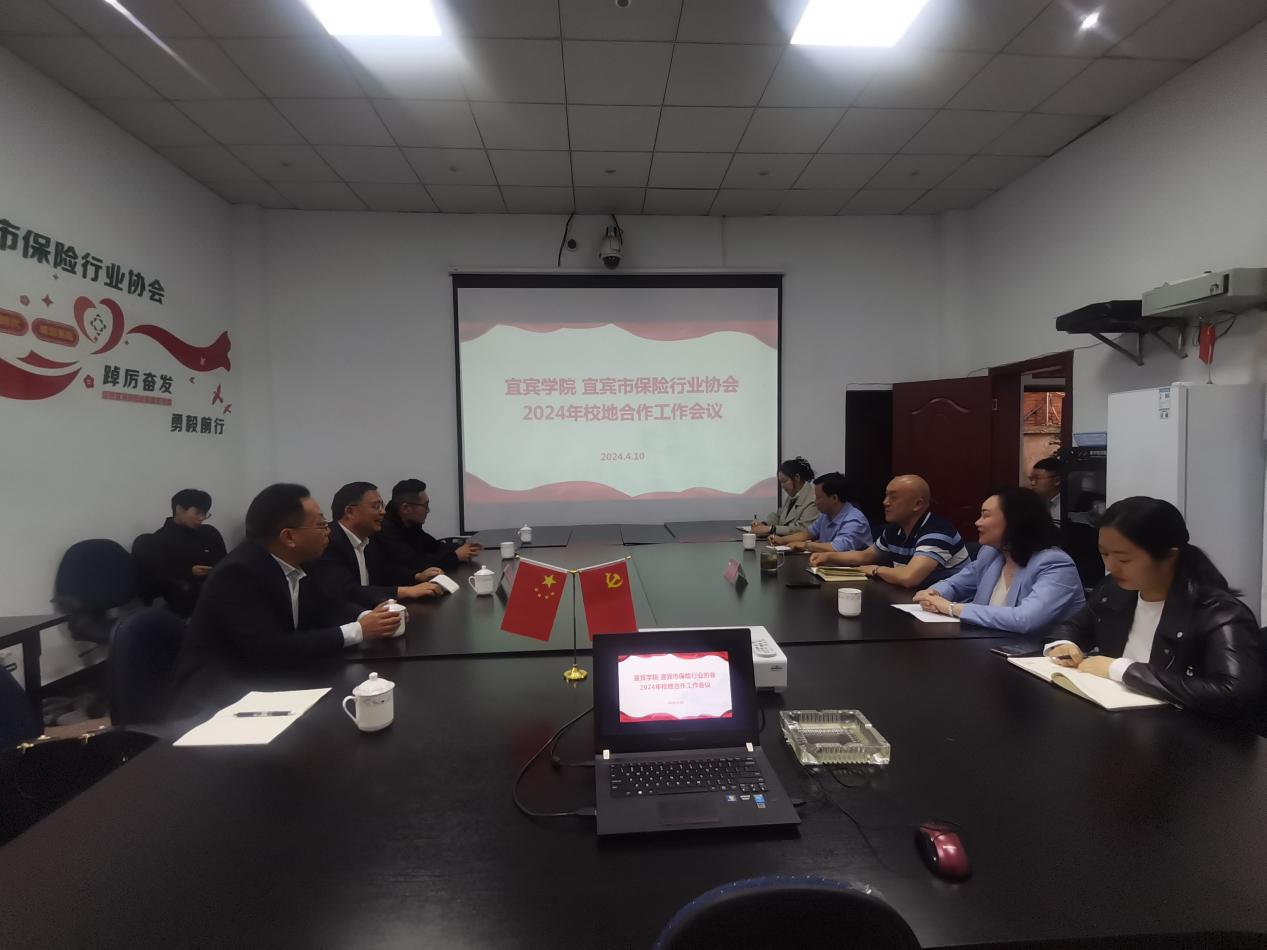 4月10日上午,宜宾学院与宜宾市保险行业协会就校地合作事宜在协会会议室举行了座谈。学院校地合作办公室主任杨南翎、副主任赵德伟、产教融合科科长熊宇,市保险行业协会秘书长曾理、办公室主任蔡巧、消保中心主任徐鑫,以及阳光财险宜宾中心支公司总经理刘强、泰康人寿宜宾中心支公司总经理谢静波参加座谈会。会议旨在共同探讨双方在学生实习实训、就业及校企合作申报课题等方面的合作潜力。
