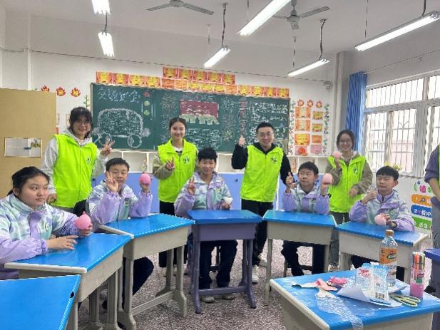 我院学生精心准备了一系列精彩有趣的化学科普实验。活动过程中,他们一边操作,一边用生动形象、简单易懂的讲解方式,向孩子们深入浅出地介绍了化学的奇妙之处,带领他们开启了一场神奇化学世界的探索之旅。随后,我院学生与孩子们进行了亲切地互动,耐心陪着孩子们一起玩游戏、跳舞,鼓励孩子们发挥自己的想象力和创造力。全体成员将精心准备的慰问品一一送到每个孩子手中,勉励他们树立信心,克服困难,快乐成长。