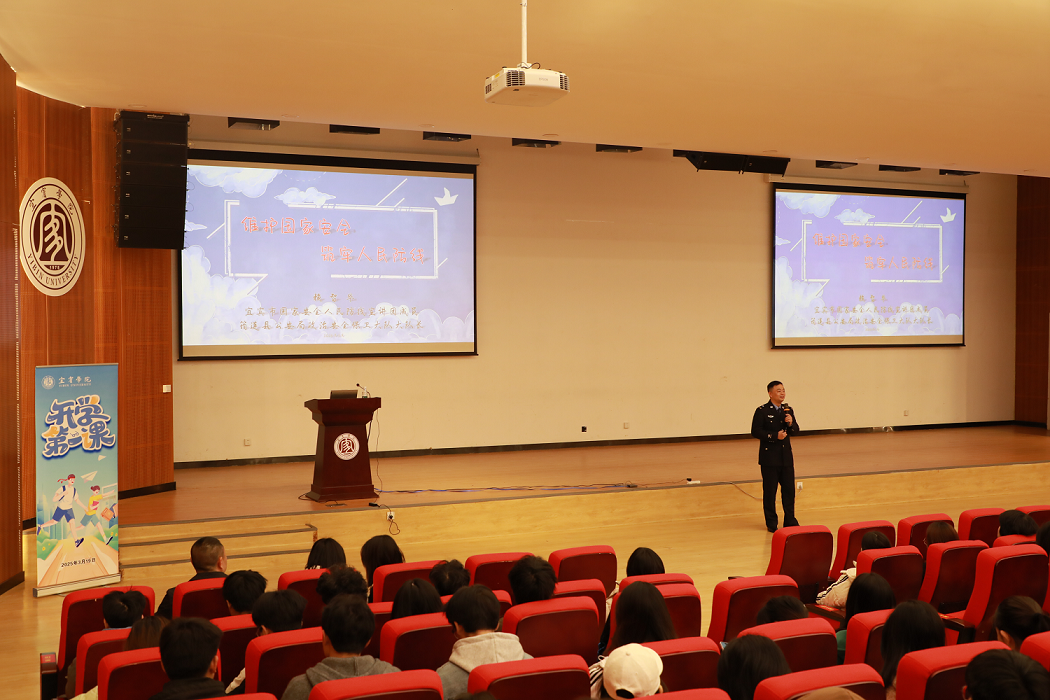 3月19日,“开学第一课”国家安全教育讲座在宜宾学院临港校区求是会堂顺利举办。宜宾市公安局三江新区分局、筠连县公安分局干警与临港校区400余名师生共同参与。