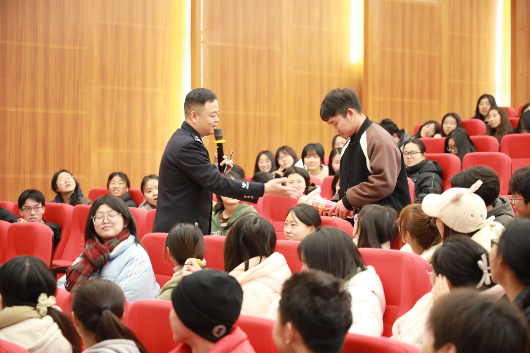 讲座中,赖警官结合真实案例,揭露在网络媒体、文化交流等方面存在的安全风险,用数据说话、以视频为证,警示国家安全与每个人息息相关。他深刻剖析电影《哪吒》《变形金刚》等作品,引导学生从文化作品中读懂安全博弈。现场互动环节学生争相抢答,气氛热烈,答题者还获得了小礼物。与会同学表示:“以前觉得国家安全很抽象,现在明白了随手拍风景也可能泄密,以后一定提高警惕”。