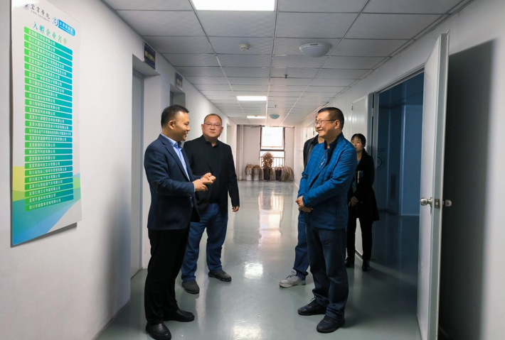 在大学科技园腾卓园区,邱军带领宜宾市人社局、三江新区社事局一行参观了党建活动室、科研平台和部分在园企业,并介绍了省级大学科技园的建设背景、功能定位、企业孵化、成果转化以及创新创业服务等有关情况。