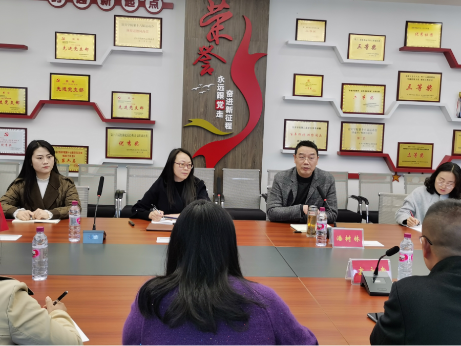 3月14日上午,宜宾职业技术学院汽车与轨道交通学院党总支书记高永贵一行8人到我校国际应用技术学部交流。学部党总支书记潘树林出席座谈会并主持讲话。党总支副书记顾秋香、党政办主任王玉平、学工办主任谢琰参加座谈交流。