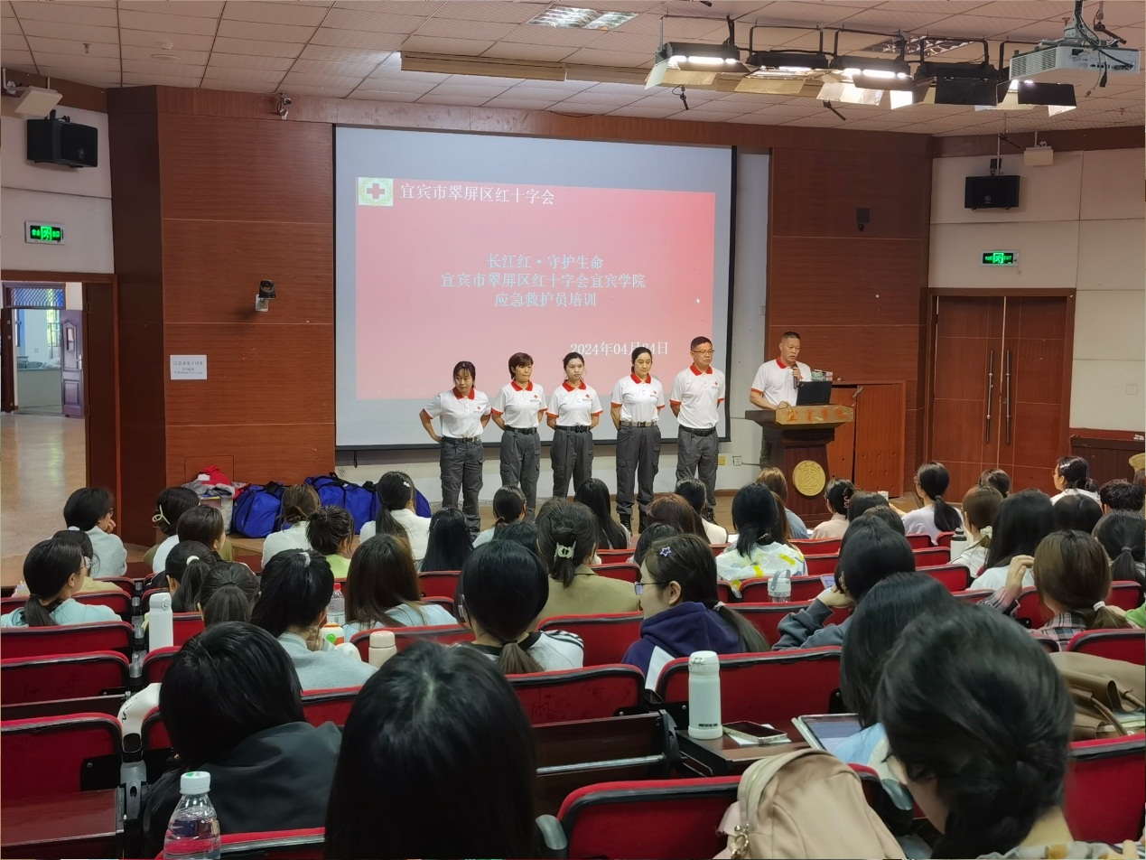 为充分发挥全国学校急救教育试点学校引领作用, 全面推进学校急救教育工作, 提高学生在突发意外事件中的自救与互救能力,近日,我校联合翠屏区红十字会在上江北校区三教A101,举行2024年第一期红十字救护员培训。