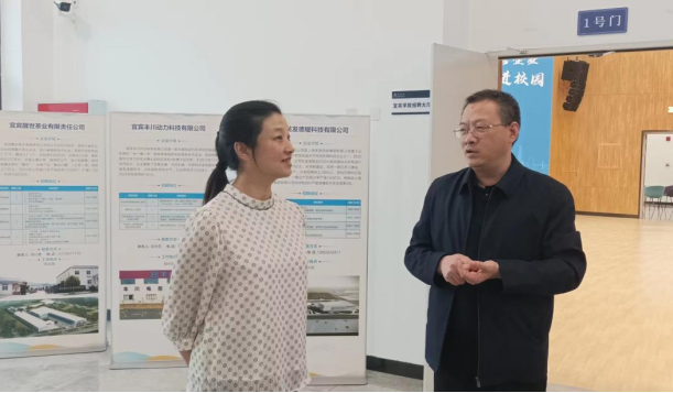 仪式结束后,邓瑜一行前往宜宾学院临港校区,实地学习领会习近平总书记视察宜宾学院重要指示精神。在求实会堂,蔡乐才详细介绍了习近平总书记来校考察调研、学校贯彻落实总书记来川来宜来校视察重要指示精神,以及宜宾学院毕业生就业、人才培养、科研成果转化等情况,陪同大家参观毕业生就业情况展台、模拟垃圾智能分类运输机器人展台、智慧农业物联网监控系统、油樟创新展区、就业创业指导服务展区、招聘会会场等。