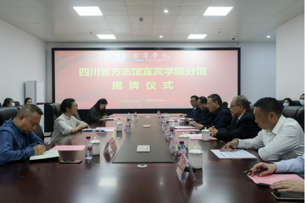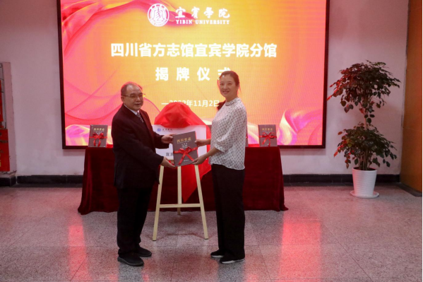 邓瑜、蔡乐才共同为四川省方志馆宜宾学院分馆揭牌。