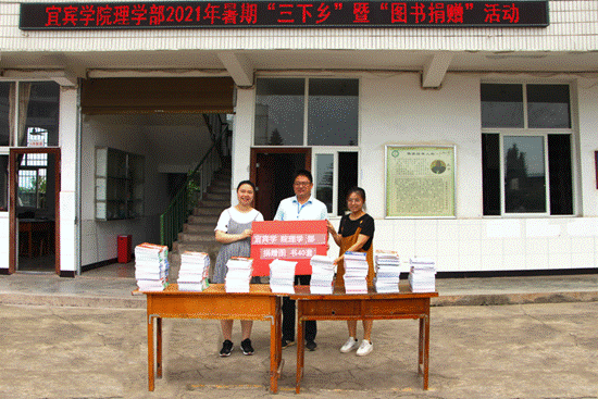 授课结束后,草堂中学校长雷福禄组织全体同学在操场举行“图书捐赠”仪式。马翠老师将宜宾学院理学部捐赠的40套“四大名著”图书捐赠给草堂中学的孩子们。雷福禄对理学部的此次捐赠以及志愿者们的精彩授课表示由衷的感谢。
