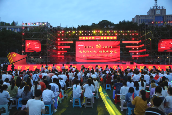一百年风雨砥砺,一百年高歌奋进。为庆祝中国共产党100周年华诞,热情讴歌党的光辉历程和丰功伟绩,7月1日晚,宜宾学院在A区田径运动场举行庆祝中国共产党成立100周年“欢歌新时代 颂歌献给党”文艺晚会。党委书记蔡乐才,党委副书记、院长王玲,党委副书记鲁飞,党委副书记、纪委书记徐其虎,党委常委、副院长王藩侯、周广均、王如渊、罗娅君、白玉林,党委常委、党委组织部长华曦,党委常委、党委宣传部长李成文出席晚会。