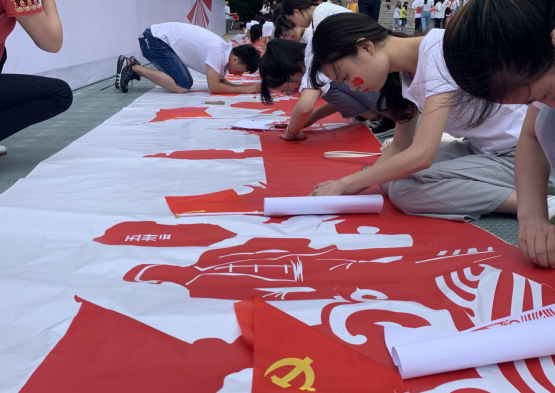 宜宾学院书法美术摄影协会面向全校在岗教职工征集了近100幅书法、美术、摄影作品,从不同的角度,以不同的形式讴歌了党的丰功伟绩,抒发了老师们爱党、敬党、爱国的深情厚意。艺术与产品设计学部的师生们以《长江首城 红色宜宾》为主题,集体创作完成了建党100周年纪念大型作品,将宜宾8名著名烈士和他们的重要事迹、场景与宜宾标志性建筑融为一体,制作了30米画卷。