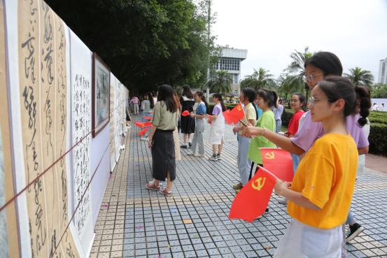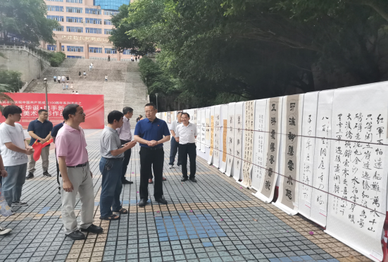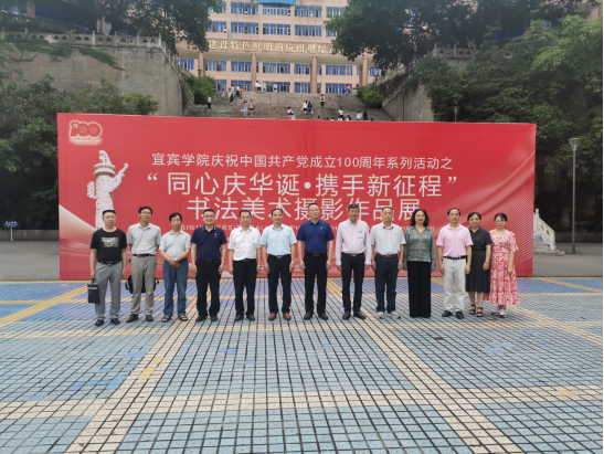 丹青吐翠,翰墨飘香,为庆祝中国共产党成立100周年,6月17日-18日,由宜宾学院工会主办,宜宾学院党委统战部协办,宜宾学院书法美术摄影协会和艺术与产品设计学部承办的“同心庆华诞·携手新征程”书法美术摄影作品展在宜宾学院A区青春广场举办。党委书记蔡乐才,党委副书记、工会主席鲁飞,党委常委、党委组织部长华曦,党委常委、党委宣传部长李成文,党政办、校工会、艺产学部等部门领导莅临作品展现场。