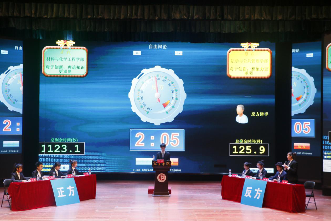 经过初赛、复活赛、复赛和半决赛的层层选拔,来自材化学部、法管学部、人大学部、文艺学部的四支队伍突破重围成功进入决赛。材化学部与法管学部围绕辩题“对于创新,理论知识/想象力更重要”进行季军争夺;人大学部与文艺学部围绕辩题“我选择大城床/小城房”进行冠军争夺。辩论场上,辩手们就对手发言中出现的漏洞进行质询,并运用贴切的例子进行生动、深刻的论证。场下观众反响热烈,传来阵阵掌声。评委们则就立论深度、逻辑思维等对四支队伍的表现进行点评、提问。