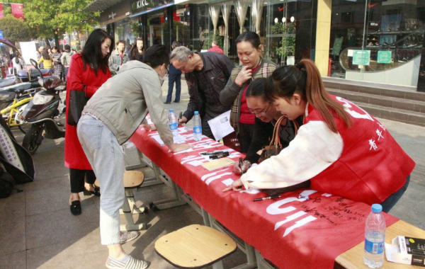 活动中,志愿者们向过往的老师和同学发放宣传单,介绍有关消费者维权方面的知识。同时,还准备签字笔、小本子、橡皮擦等小礼品,邀请同学们参加维权问题的有奖问答,并在宣传横幅上签名。