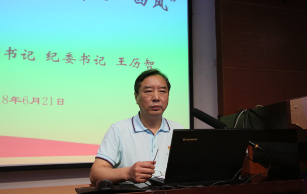 621下午,党支部书记培训班第二次专题讲座在硕勋楼A101举行,党委副书记、纪委书记王历智为培训班作加强党的作风建设专题讲座,培训班全体学员聆听了讲座。