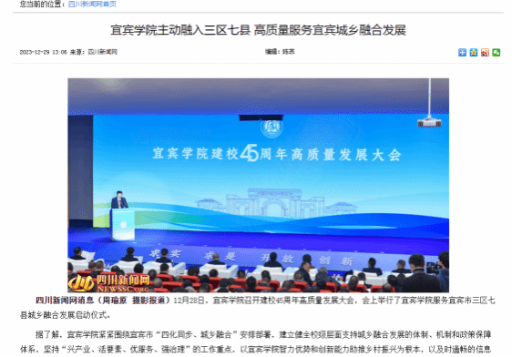 4.四川新闻网:聚焦“办好人民满意的高等教育”目标 宜宾学院召开建校45周年高质量发展大会