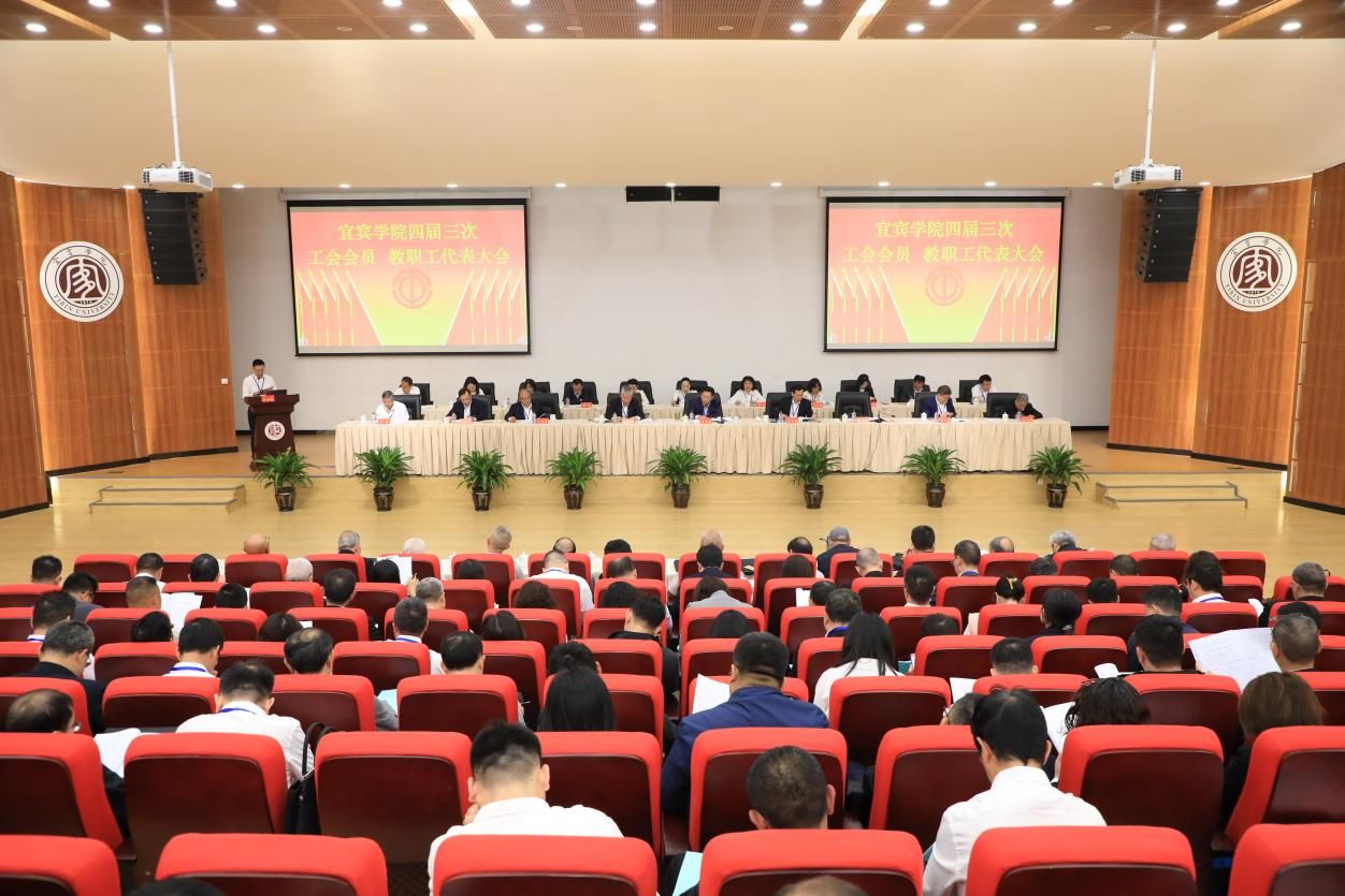 4月30日上午,在庄严的国歌声中,宜宾学院四届三次工会会员、教职工代表大会在临港校区求是会堂召开。宜宾学院党委书记马洪江在会上讲话,党委副书记、院长杜正聪作行政工作报告,党委副书记、工会主席蒋道平作工会工作报告,全体校领导、党委常委、党委委员、离退休校级干部出席会议,115名正式代表、28名列席代表参加了大会。