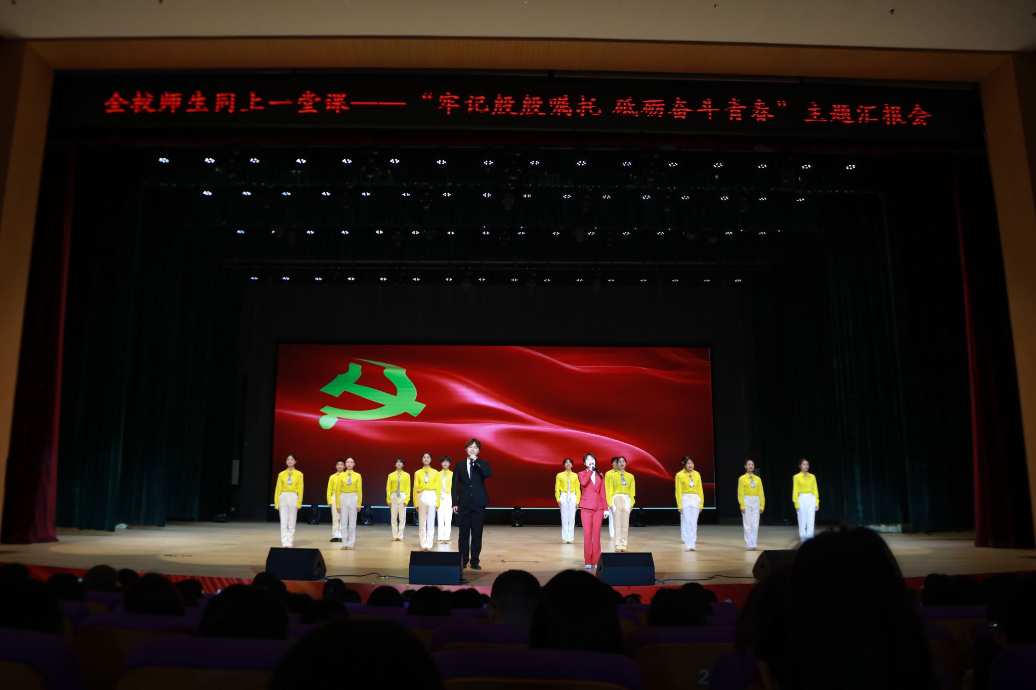 师生同上一堂课——“牢记殷殷嘱托 砥砺奋斗青春”主题汇报会以微党课为主要形式,通过师生代表讲述育人故事、就业故事和成长故事,传递积极向上的教育力量;通过朗诵《总书记来到我们学校》、舞蹈《灯火里的中国》、合唱《向往》等节目,展现师生精神风貌,凝聚师生共识、汇聚奋进力量。