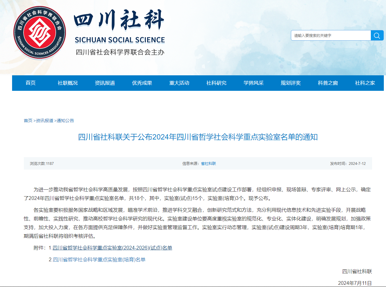 近日,四川省社科联公布了2024年四川省哲学社会科学重点实验室名单,宜宾学院申报的“城乡产业融合发展数字分析与智能决策重点实验室”被批准为培育建设实验室。