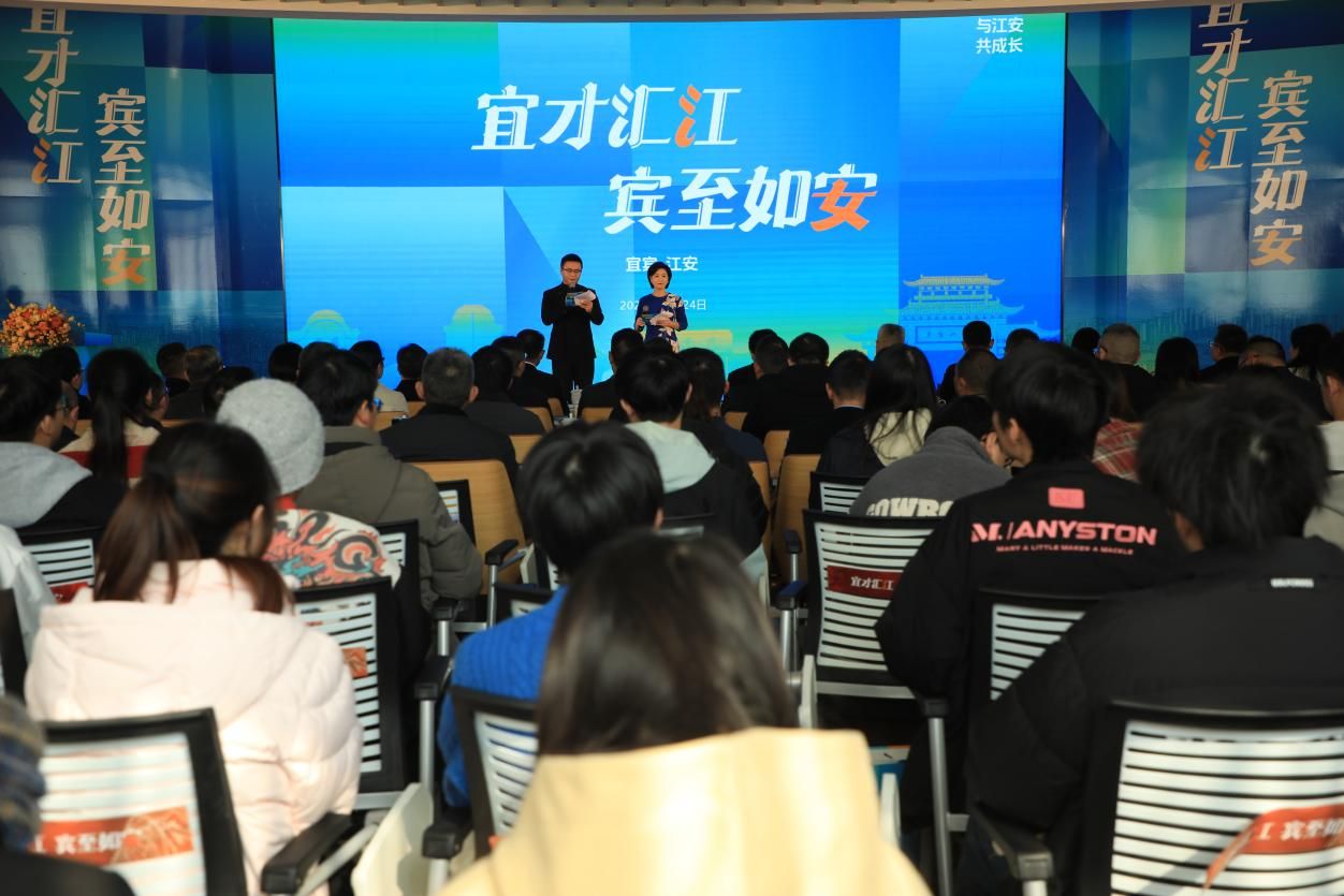 当天下午,江安县举办“宜才汇江·宾至如安”宣介会,马洪江、江安县委书记张林出席并讲话。会议发布《人才岗位需求清单》,聚焦新能源、新材料等新兴产业,推介四川江安经济开发区8家重点企业的招聘需求。同时,开展专场招聘会,20家企业携260余个优质岗位虚位以待,覆盖新兴与传统产业,并设置“一对一”就业指导专区,助力学子精准匹配职业方向。