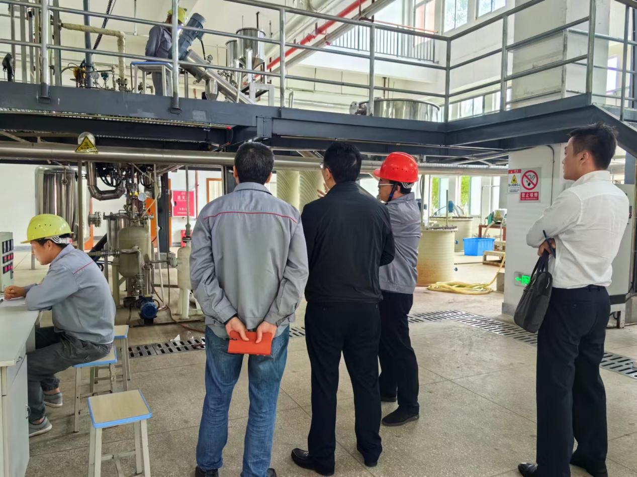 马洪江一行首先考察了新材料产研院工程试验中心中试试验线,参观了聚苯硫醚树脂合成现场,详细了解了我院工程试验中心的建设情况、实验开展情况、安全生产措施以及工作流程等。随后,考察了科技成果展示厅、研发中心和分析检测中心实验室。