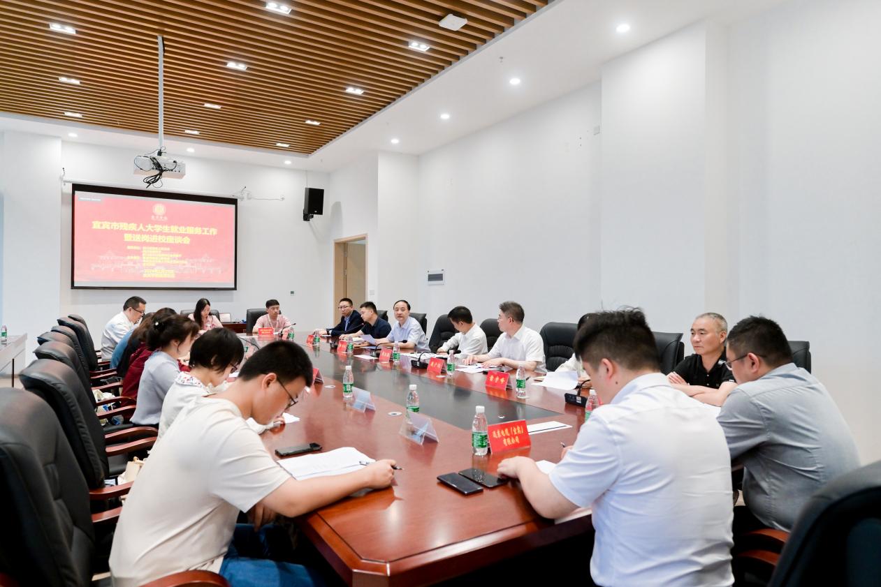 为进一步做实做细就业指导服务,抓实抓牢精准帮扶举措,促进残疾毕业生更加充分更高质量就业,近日,宜宾市残疾人大学生就业服务工作暨送岗进校座谈会在宜宾学院临港校区召开。四川省残疾人联合会副理事长黄卫德,宜宾学院党委常委、副院长周广均出席座谈会并讲话。宜宾市部分人力资源机构及企业代表,宜宾学院等在宜高校就业负责人及残疾毕业生代表参加了座谈会。会议由宜宾市残疾人联合会党组书记、理事长任兴江主持。