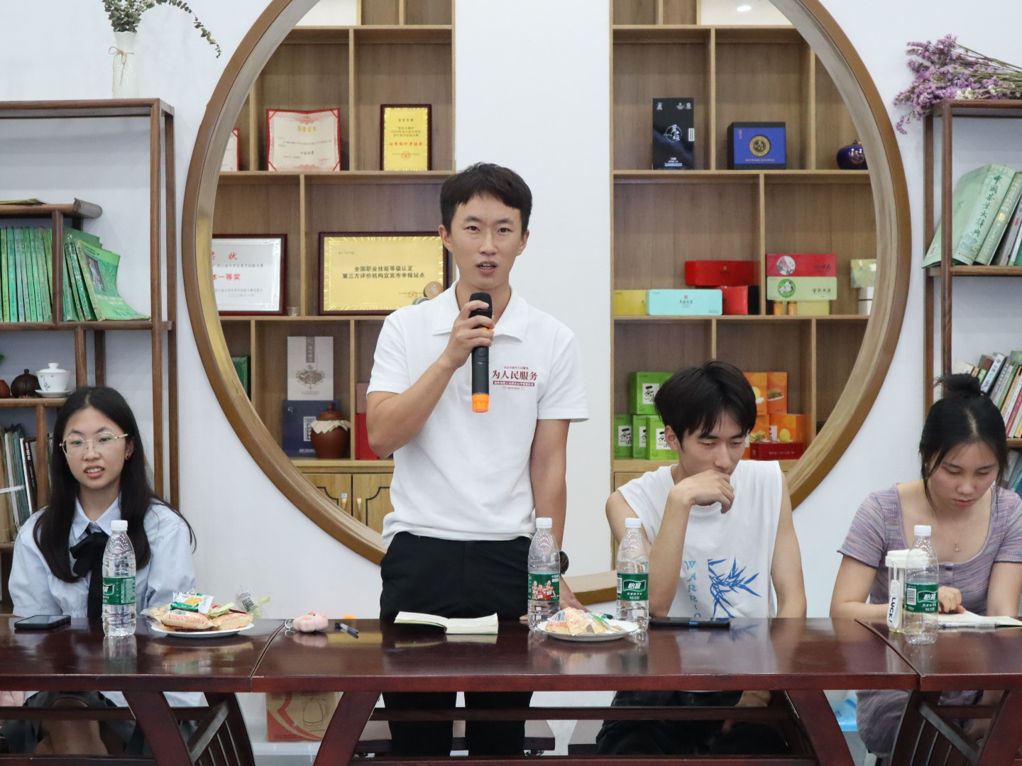 陈曦鼓励同学们畅所欲言,结合思想谈认识、结合岗位谈体会、结合工作谈成长、结合发展谈需求、结合问题谈建议。同学们逐一发言,积极从“学生发展”“创新创业”“就业”“工作”“考研”“学校基础设施建设”等方面,分享各自心得和经验。大家互相探讨、友好交流,现场氛围融洽。