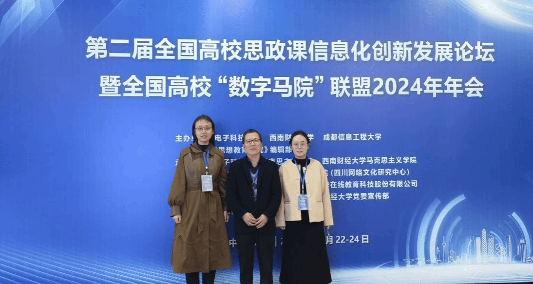 为深入学习贯彻习近平新时代中国特色社会主义思想和党的二十届三中全会精神,11月22-24日,第二届全国高校思政课信息化创新发展论坛暨全国高校“数字马院”联盟2024年年会在成都举行。该年会由电子科技大学、西南财经大学、成都信息工程大学、《思想教育研究》编辑部联合举办。会议围绕“高校思政课信息化创新发展”主题,共议数智时代高校思政课的融合与发展,马克思主义学院院长竭仁贵,青年教师郝敏汐、袁兴参加会议。