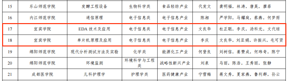近日,四川省教育厅公布了本科高校应用型品牌课程立项名单,确定立项建设60门省级本科高校应用型品牌课程。由宜宾学院推荐申报的《EDA技术及应用》《单片机原理及应用》2门课程全部获批立项,居省属同类高校前列。