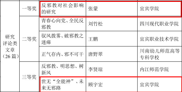 在网络有奖竞答环节,宜宾学院师生积极参与,凭借扎实的知识基础和出色的答题表现,4999名师生获得电子荣誉证书。同时,在反邪教优秀原创作品征集评选中,宜宾学院31部优秀作品参赛,5部作品脱颖而出,其中,张蒙的作品《反邪教对社会影响的研究》荣获一等奖,顾宇宏的《世无“全能神”、未来无邪路》荣获三等奖;代会利的《君子不立于危墙之下》,刘桃的《青春无邪》,郭茜瑞的《醒》荣获优秀奖。这些作品深刻剖析了邪教的危害,传播了崇尚科学、反对邪教的正能量。