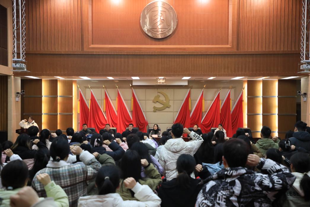 教育科学学院2022级崔素梅代表支教学生发言。她表示,作为新时代的青年,将接过时代的接力棒,勇往直前,在祖国最需要的地方展现青春的光芒。109位顶岗支教学生庄严宣誓,覃凤清向顶岗支教团队授旗,标志着此次支教之旅正式拉开帷幕。