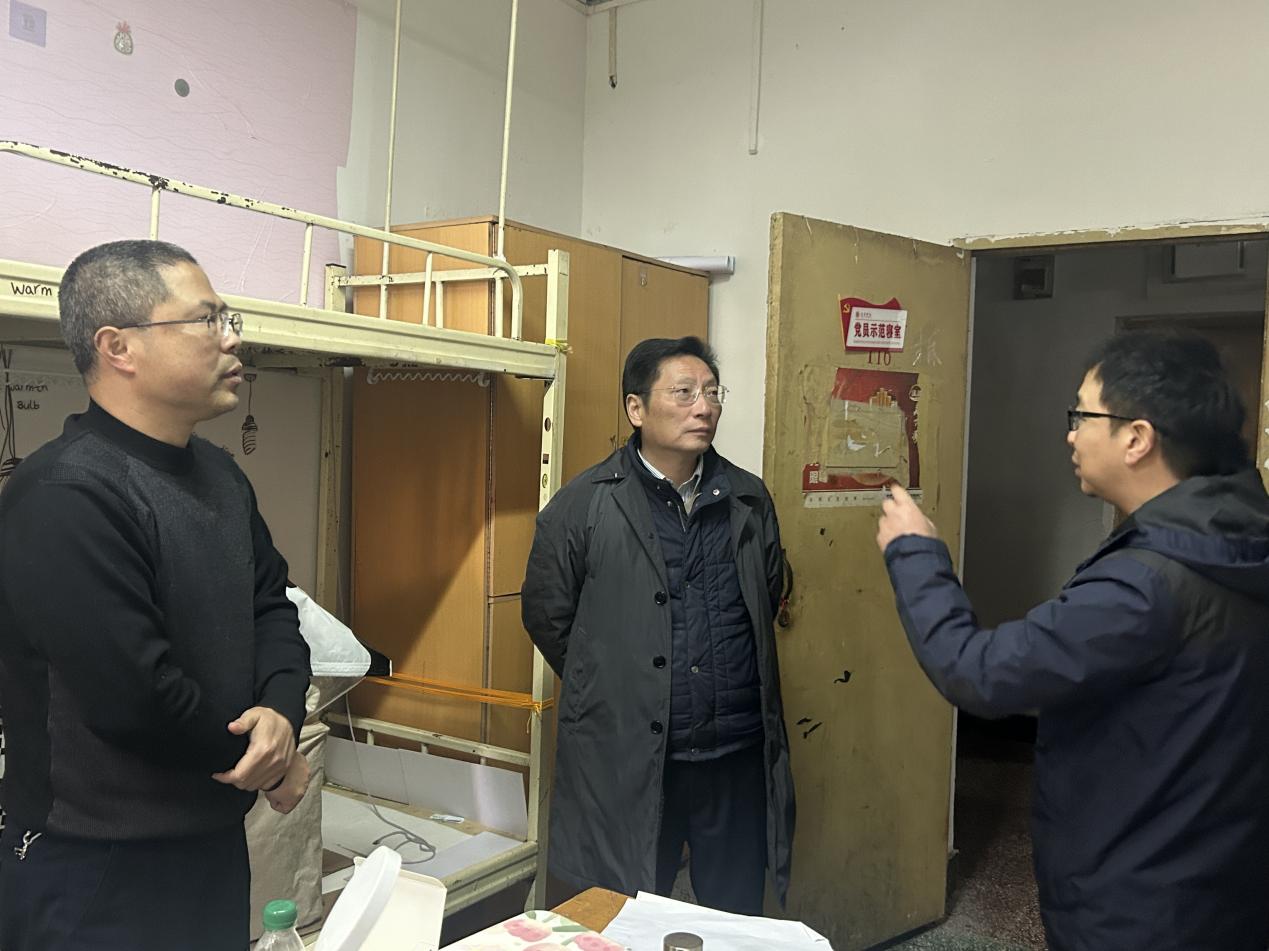 2月26日下午,学校党委书记马洪江一行到江北校区(B区)开展调研工作,实地察看学生宿舍及拆危区域,并详细了解了艺术设计学院各项工作情况。学校党政办、党委保卫部、基本建设处相关负责人陪同调研。