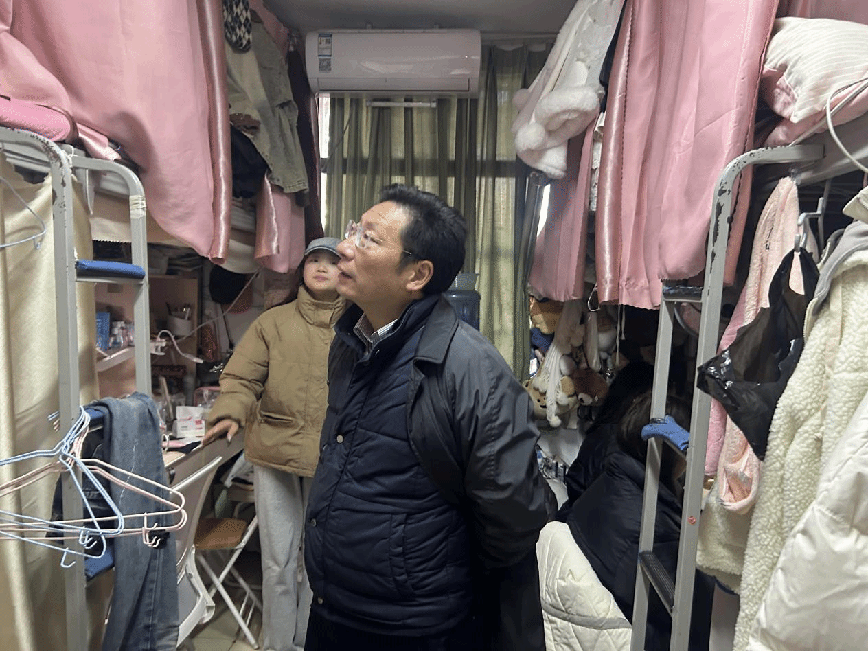 马洪江一行到学生宿舍察看内部环境,仔细询问学生的生活起居情况,对宿舍的基础设施、卫生状况、住宿安排等细节逐一了解。他强调,学生宿舍是学生在校期间的重要生活场所,要切实保障宿舍的安全、整洁与舒适,为学生创造良好的生活环境,让学生能够安心学习、舒心生活。