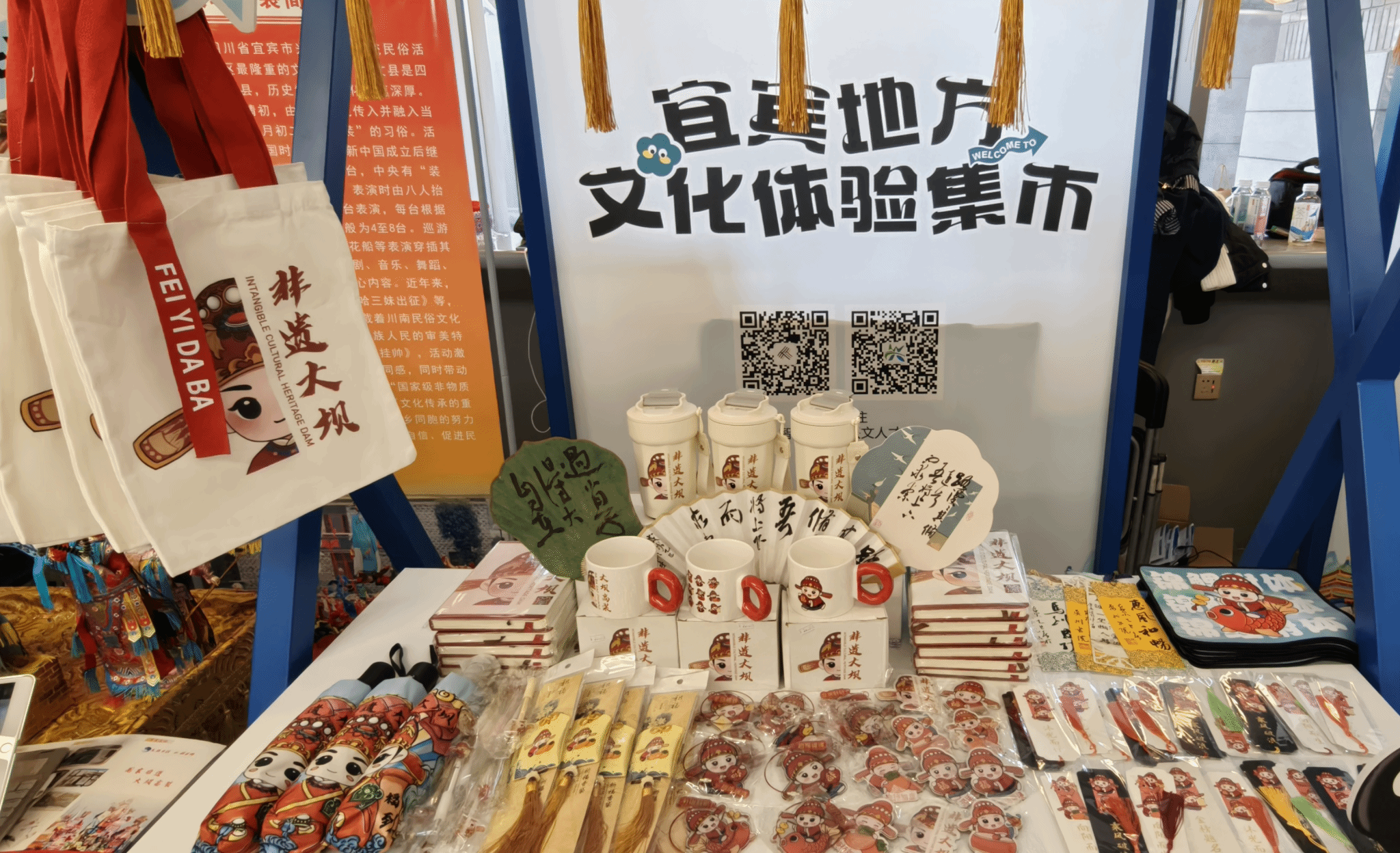 3月25日,宜宾学院艺术设计学院手工印染工作室团队为兴文县国家级非遗大坝高装设计的文创产品在北京大学“寻味宜宾·食在北大”美食文化周活动中亮相,成为文化展示与人才推介的重要亮点。