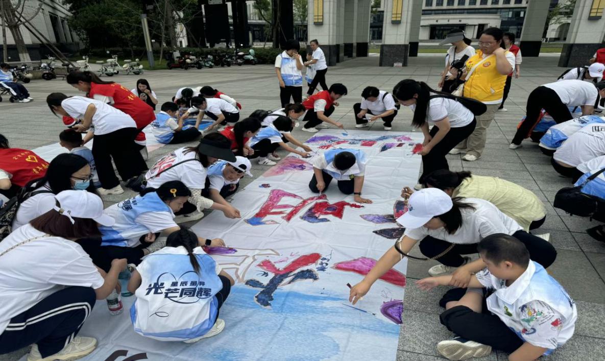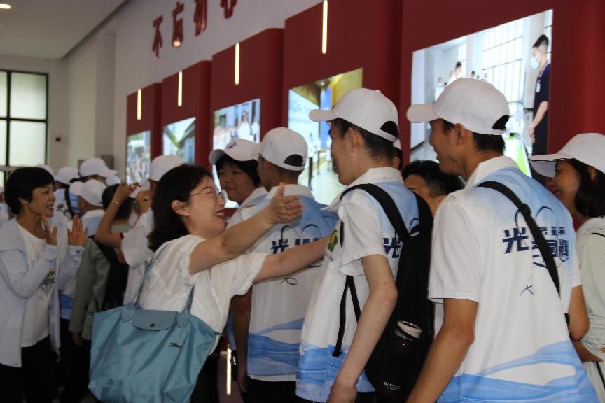 启动仪式后,全体人员在学校志愿者的陪同下参观求实会堂等场所,感受浓厚大学文化氛围。在“舞动奇迹”的手语舞表演环节,心智障碍青少年、家长与大学生志愿者携手演绎《不要慌,太阳下山有月光》,以无声的韵律传递勇气与希望。随后,全体参与者共同绘制以“全国助残日”为主题的20米爱心画布,斑斓色彩中凝聚着对包容社会的期许。心智障碍青少年还在我校志愿者的陪伴下体验高校食堂就餐,感受校园生活的日常点滴。