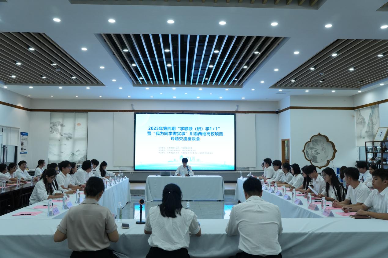 20日下午,2025年第四期“学联联(研)学1+1”暨“我为同学做实事”川渝两地高校项目交流专题交流座谈会在临港一期杏林5栋101室举行。