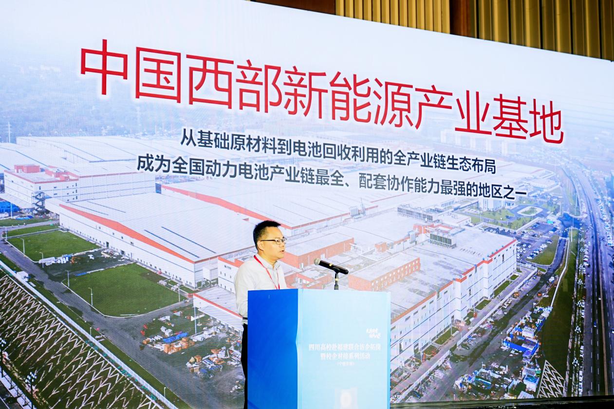 杨强在发言中以全球动力电池领军企业——“宁德时代”与宜宾市的产业合作开始,表达了愿同福建、宁德进一步强化交流互动,将合作领域从产业拓展到人才,从车间延伸到校园,实现互利共赢、共同发展的决心。他从因城而兴——宜宾学院发展历程和办学实力,因时制宜——宜宾学院始终牢记嘱托服务发展大局,因材施教——宜宾学院着力培养“三有三能”高素质应用型人才,因势利导——宜宾学院全面构建全链条就业服务体系四个维度向参会代表进行推介。他希望能同各方企业形成跨区域的“产学研就”深度融合,共创校地企三方共赢的美好未来。