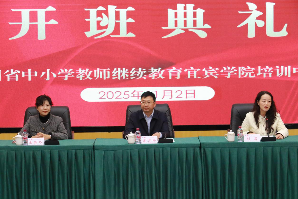 11月2日下午,2025年四川省“国培计划”幼儿园骨干教师保教能力提升培训班开班典礼在宜宾学院临港校区求实会堂举行。宜宾学院党委副书记蒋道平,教师教育学院党委书记刘薪,教师教育学院副教授、项目首席专家朱莉玲、培训班班主任及全体学员参加典礼。