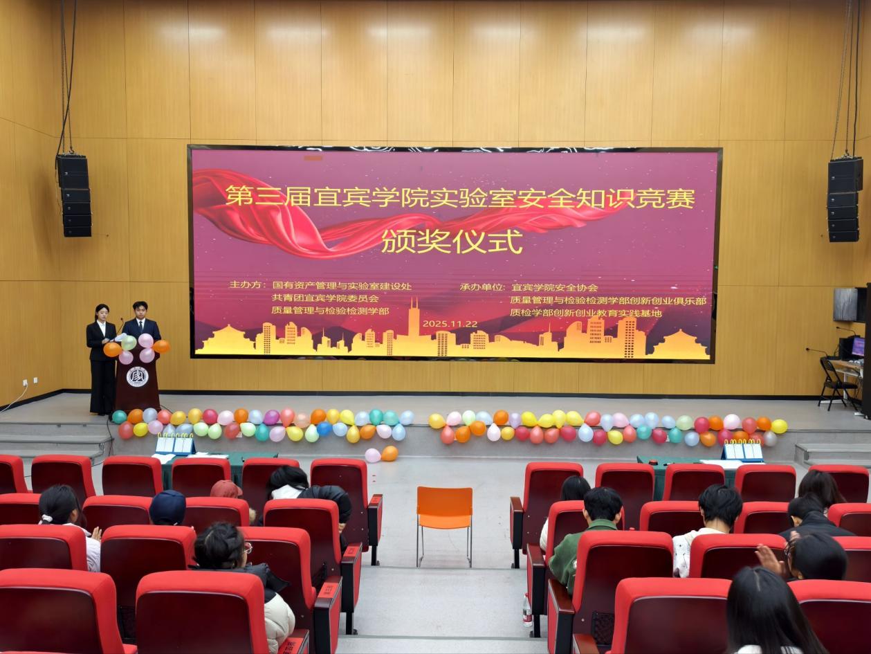 近日,宜宾学院第三届实验室安全知识竞赛在宜宾学院临港校区求实会堂举行。本次竞赛以“以赛促学强技能,以学促用保安全”为核心,深入落实《高等学校实验室安全规范》要求,旨在普及实验室安全知识,强化学生安全防范意识与应急处置能力,筑牢校园实验室安全防线。竞赛由国有资产与实验设备管理处、共青团宜宾学院委员会、质量管理与检验检测学部联合主办,宜宾学院安全协会、质检学部创新创业俱乐部及质检学部创新创业教育实践基地共同承办。