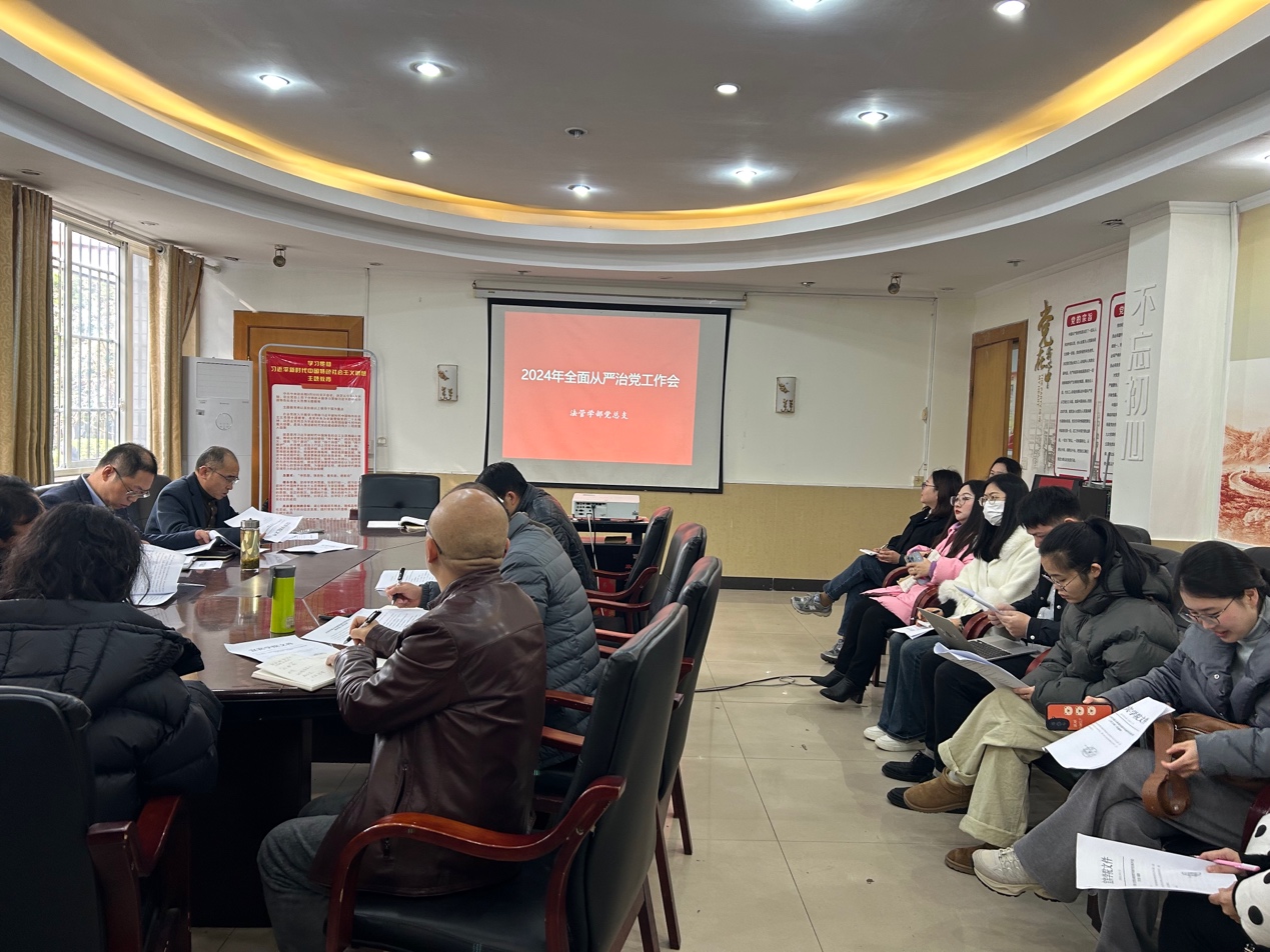 正处级组织员蒲东升传达了2024年学校全面从严治党工作会的会议精神尤其是学校党委工作要求,通报了典型案例,结合《党委(党组)落实全面从严治党主体责任规定》《中国共产党廉洁自律准则》《中国共产党党内监督条例》《中国共产党问责条例》《中国共产党党员教育管理工作条例》等党内法规对从严治党的内涵进行了深入阐释。