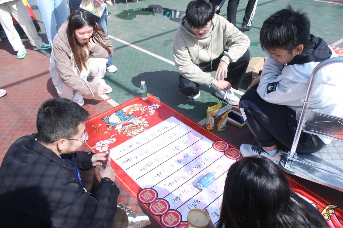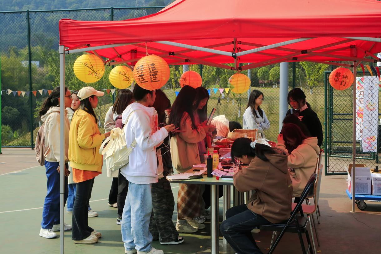 春光明媚,一场充满青春活力的游园会在篮球场热烈进行。工作人员设置各式摊位,同学们手持集章卡,参与摊位游戏集印章,集满印章凭卡兑换礼品。游戏形式多样,内容丰富。滚滚乐,参与者在指定位置滚动饮料罐,按照饮料罐停留的中奖位置可以兑换相应奖品;夹弹珠,参赛者分小组,用筷子夹弹珠,将其放到指定位置,每个小组的每位成员各有40秒时间,规定时间内弹珠总数最多的小组获胜;投壶,2人各持10个投掷物品,将容器放远处,2人分别进行投掷,进入容器的投掷物品多的一人获胜……此外还有你画我猜、表情包卡牌、弹弹棋、踩雷磁力感应棋等丰富多彩的游戏吸引着大量同学参与,部分同学身着汉服、cos服穿梭在游园活动中,同学们一起载歌载舞为现场增添了别样的风采。