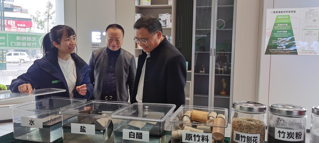杨泽平介绍了重庆商会的会员构成和产业、行业覆盖面。杨泽平还介绍了四川帅竹材料科技有限公司,表示该公司专注于竹炭板的研发与生产,产品以环保、健康著称,提倡“以竹代木”“以竹代塑”在绿色环保建材领域的重要性。