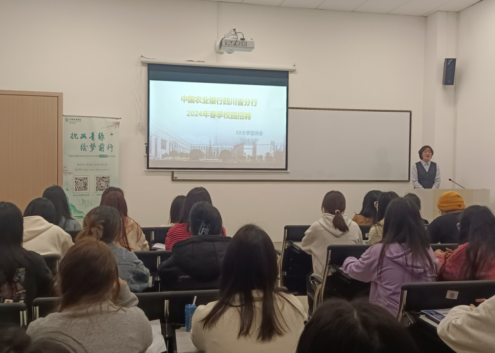 为进一步拓宽毕业生就业渠道,搭建学生与企业的交流合作平台,增强对毕业生的就业指导和精准帮扶,3月21日,经管学部在临港校区就业创业育人综合体206宣讲室举办了中国农业银行四川省分行专场招聘会。