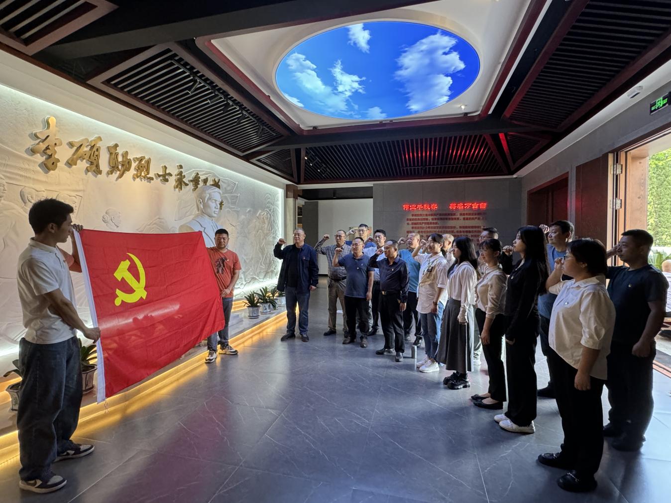 随后,在党总支副书记(负责工作)赵政一的带领下,全体党员面向党旗和李硕勋烈士的雕像,庄严肃立,紧握右拳,重温入党誓词,再一次接受了党性教育和心灵洗礼。
