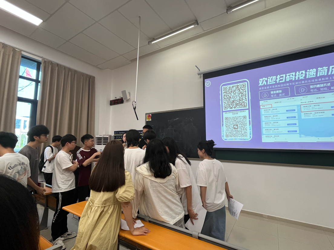 顺丰宣讲负责人围绕招聘宣传片对集团发展历史、业务体系作详细介绍,同学们深入了解到顺丰企业文化和规模,对“新鹰计划”进行了详细解说,就招聘条件、招聘流程等内容进行重点解读,帮助同学们明确具体步骤,着重强调了在人才培养体系上的优势。