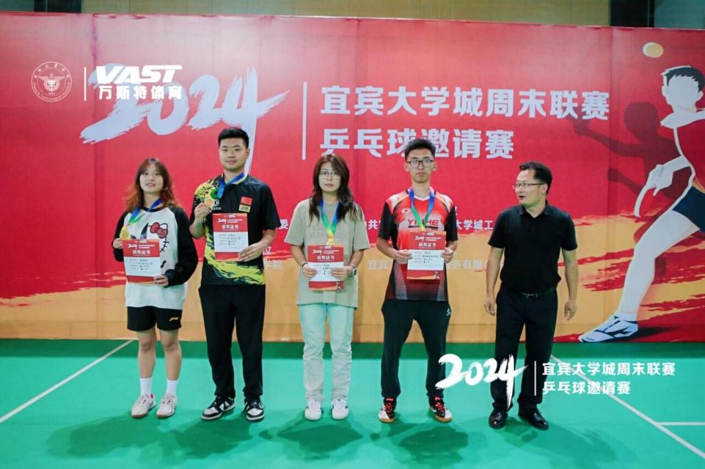 为贯彻五育并举的育人理念,丰富高校学生课余文化生活,促进大学城各高校师生之间的交流。近日,宜宾学院受邀参加由中共宜宾市委人才和大学城工作局主办,成都工业学院宜宾校区和宜宾万斯特体育服务有限公司承办的2024年宜宾大学城周末联赛乒乓球邀请赛。