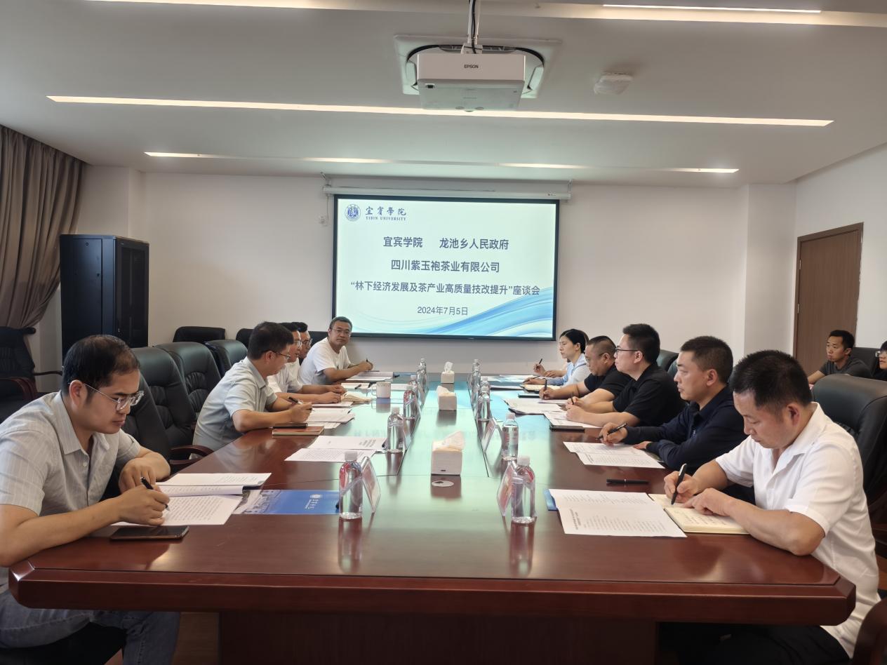 7月5日上午,叙州区龙池乡人民政府党委书记吴宁、乡长董浩然一行8人及四川紫玉袍茶业有限公司总经理黄巍一行4人与校地合作办公室在临港校区行政楼511会议室举行龙池乡林下经济发展及茶产业高质量技改提升座谈会暨签约仪式。会议由学科建设与科研处科长张建主持。