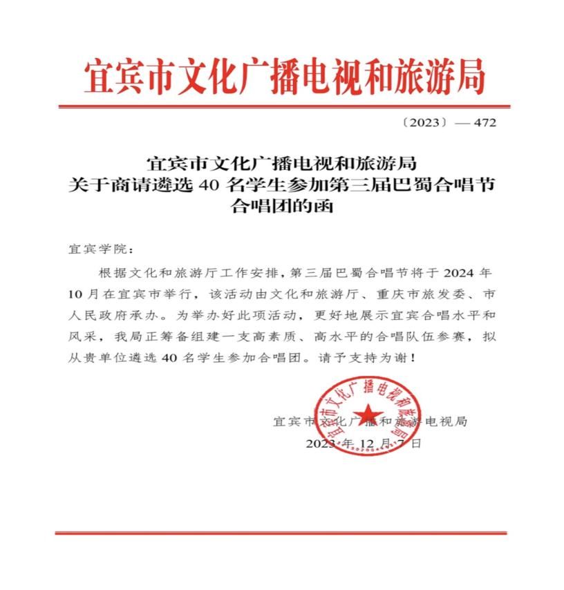 由宜宾学院音乐与表演学院党委书记、院长雷晓兰及教师杨洋、高炽灵指导排练的宜宾市和美合唱团代表宜宾市参加了本次活动。合唱团演唱的《槐花几时开》《中国春潮》两首歌曲,与来自四川省的20余支合唱团同台竞技,并顺利晋级9月底在宜宾举办的第三届巴蜀合唱节。