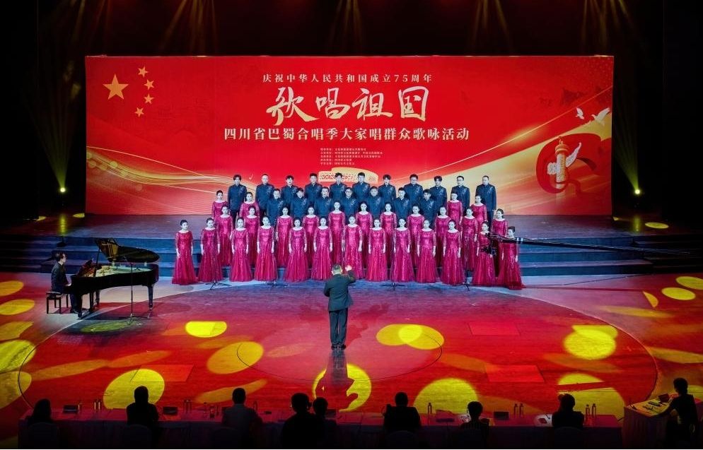 8月9日,由文化和旅游部公共服务司指导,四川省文化和旅游厅、中国文化馆协会主办,四川省文化馆承办,文化和旅游部全国公共文化发展中心支持,国家公共文化云平台支持的庆祝中华人民共和国成立75周年“歌唱祖国”四川省巴蜀合唱季大家唱群众歌咏活动在四川省文化馆(南区)群星大剧院举行。