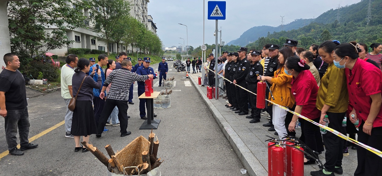 在实操演练过程中,保卫处组织全体商铺经营、从业人员进行了室外消火栓水带连接、灭火毯的使用操作和灭火实操演练。商铺人员在消防救援大队消防队员的指导下,接受了消火栓水带出水方法、灭火毯灭火的实操和灭火器的使用方法训练。
