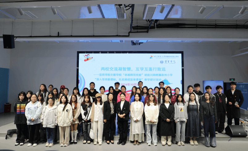 为进一步提升教学技能水平,拓宽教育教学视野,近日,文学与新闻传媒学院“卓越师范技能”班前往川师附属叙州小学参加了以“深入学用新课标,扎实推进宜美课”为主题,聚焦“文学阅读与创意表达”任务群教学评一体化的研讨活动。学校文学与新闻传媒学院党委副书记、副院长张易,宜宾市教科所语文教研员韩舟银,叙州区教学研究与教师培训中心小学室副主任彭雪枫,川师附属叙州小学语文组教师,文新学院教师代表以及“卓越师范技能”班全体师范生参加了本次活动。